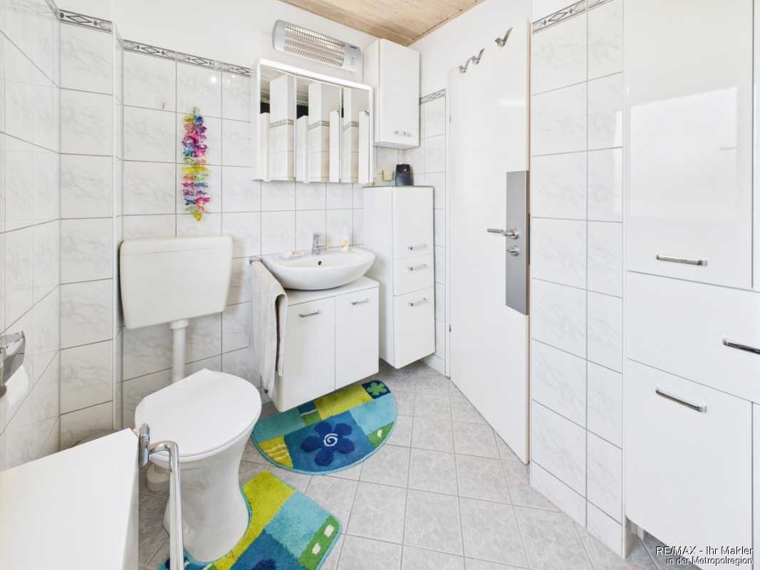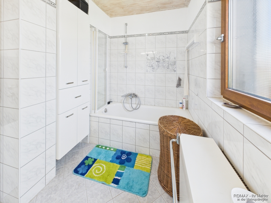- Badezimmer: Gefliest, jeweils mit Badewanne und Dusche