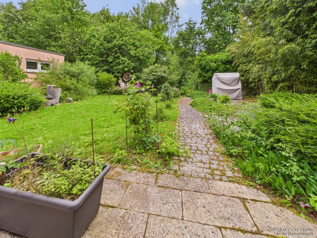 - großer Garten mit Terrasse und viel Grünfläche, mit Bewässerungsanlage