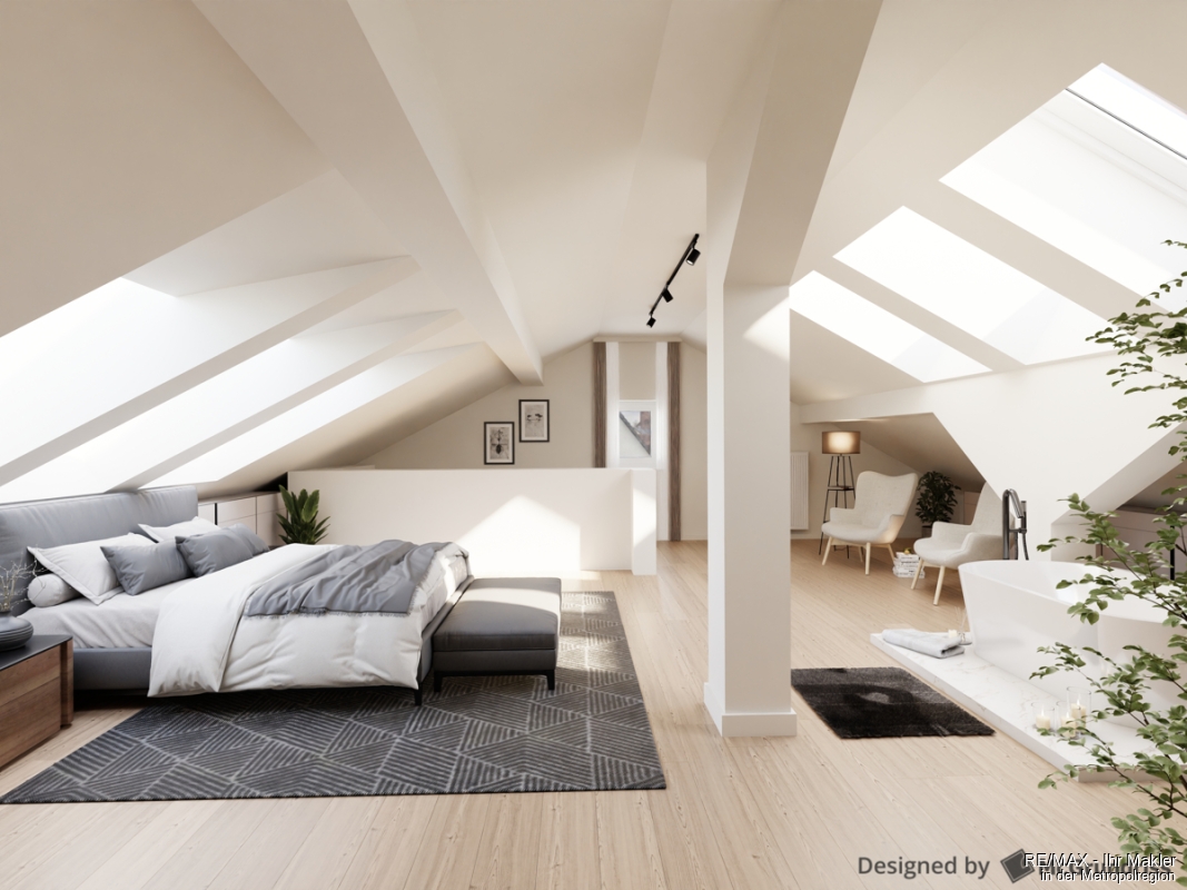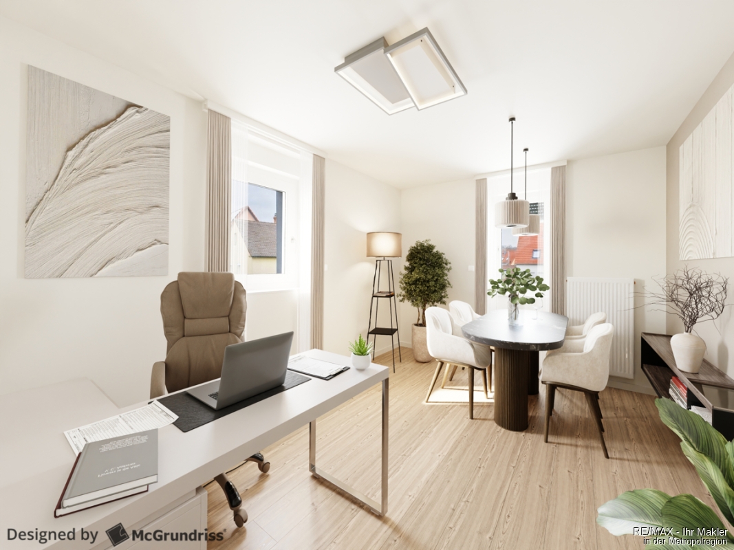 Die Bilder zeigen die Wohnung in ihrer aktuellen, noch in der Sanierung befindlichen Form, wurden jedoch digital bearbeitet, um Ihnen einen realistischen Eindruck davon zu vermitteln, wie die Räume nach der Fertigstellung möbliert aussehen können. Bis zur endgültigen Fertigstellung können individuelle Wünsche, wie u.a. die Bodenbeläge nach Ihren Vorstellungen ausgesucht werden.