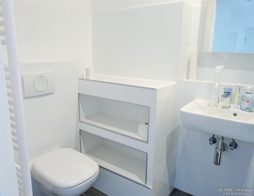 Am Ende des Flurs erreichen Sie die Küche. Sie ist bereits mit einer Hochglanz-Einbauküche ausgestattet. Eine Einbau-Kühl-Gefrier-Kombination, Backofen, Geschirrspüler, Dunstabzugshaube und Induktionskochfeld, sowie ein Waschtrockner zählen ebenfalls zur Küchenausstattung. Weiter durch die Küche gelangen Sie auf den renovierten und überdachten 2. Balkon der Wohnung. Die Kosten für Strom und Heizung rechnen Sie direkt mit dem Versorgungsunternehmen ab.